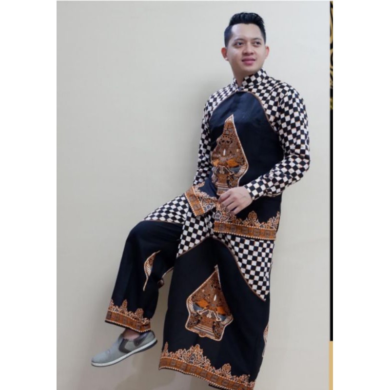 Name: Setelan Clana Sarung & Koko Batik Solo Modern Lengan Panjang Dan Pendek Gunungan Hitam Kotak Kotak