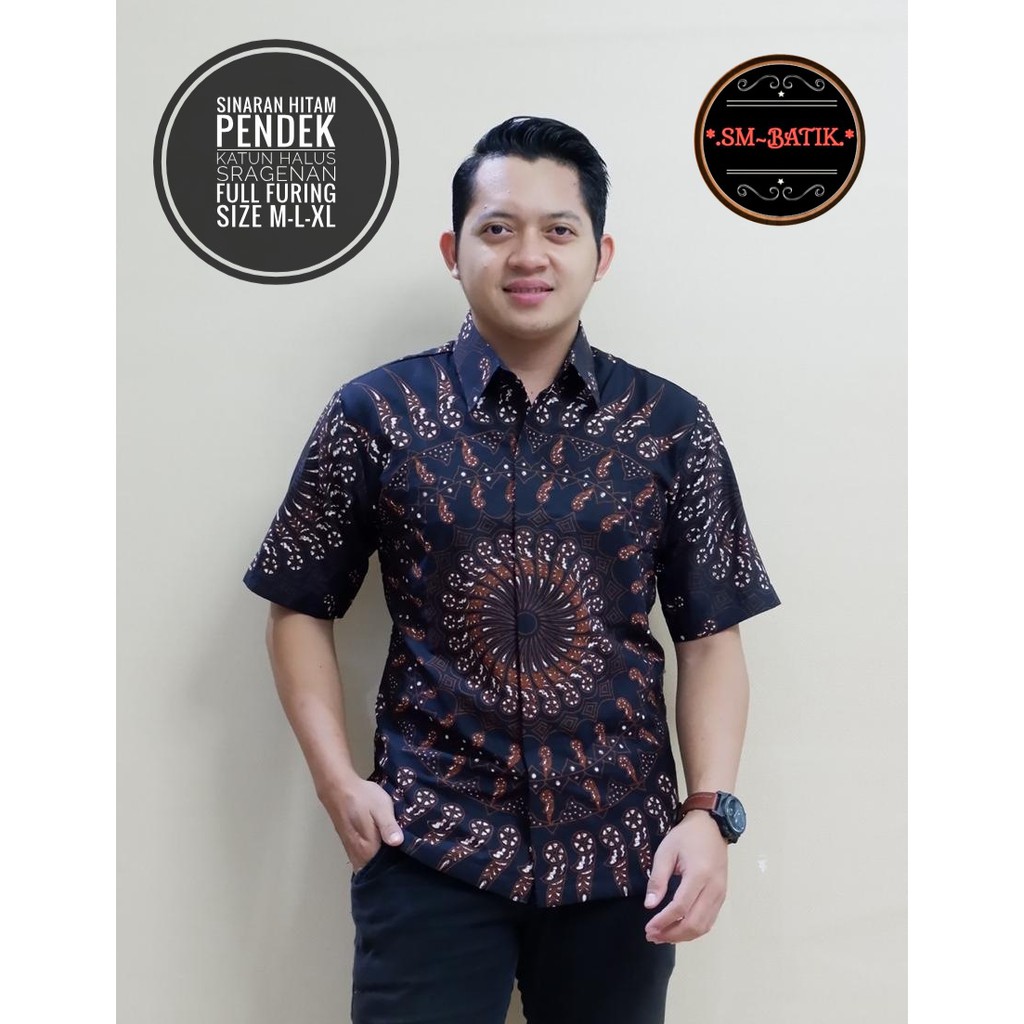 Name: Batik Solo Kemeja Batik Pendek Sinaran Hitam Sm Batiksoloamanah 130.000