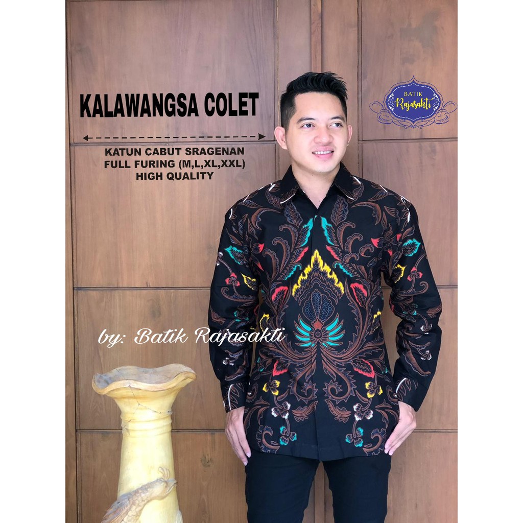 Name: Atasan Kemeja Batik Pria Lengan Panjang Premium Kalawangsa Colet Full Furing Rajasakti Solo Ori