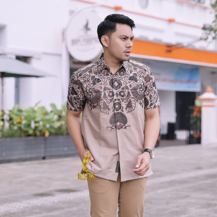 Best Seller Pakaian di Kabupaten Lebong Makutho Coklat Pendek Kemeja Batik Pria Lengan Premium Jumbo Furing Hem Baju Seragam Kantor Modern dari Batik Prabuseno Official Kota Surakarta (solo)