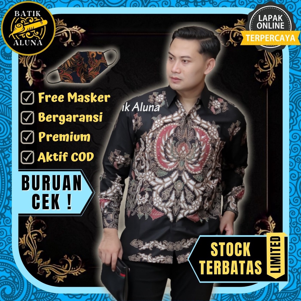 Promo Pakaian di Kabupaten Tulang Bawang Baju Kemeja Batik Premium Slimfit Furing Lengan Panjang Pria Cowok Murah Batik Solo Aluna 007 dari Batik Aluna Official Store Kab. Sragen