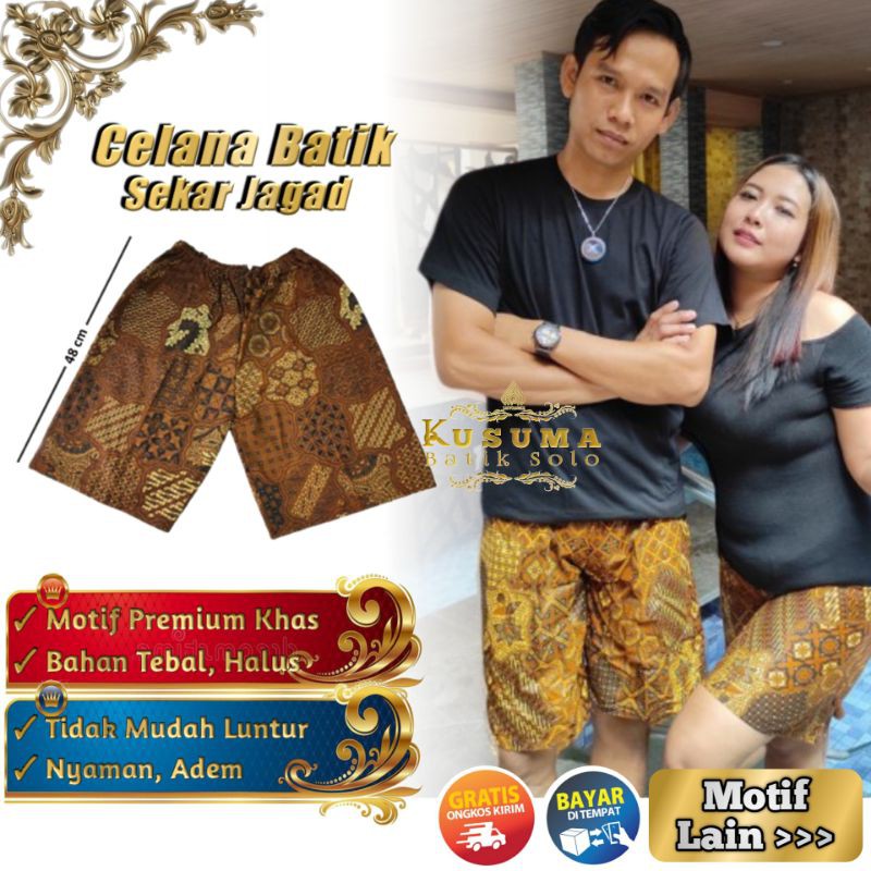 Pusat Grosir Pakaian di Kabupaten Pesisir Selatan Celana Pendek Pria Batik Solo Motif Sekar Jagad Khas Etnik Kolor Santai Keren Terbaru Kusuma dari Kusuma Batiksolo Kota Surakarta (solo)