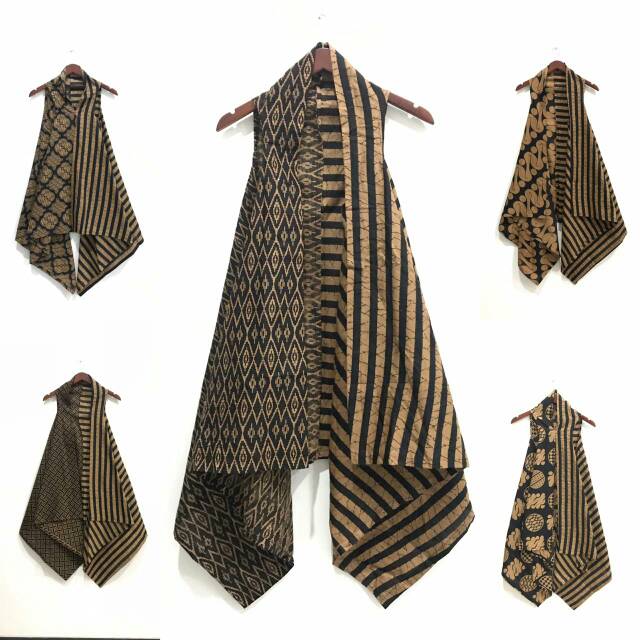 Name: Outer Batik Vest Sogan Seling Lurik Kombinasi Model Rompi Wanita Katun Batik Print Classic Aserehe