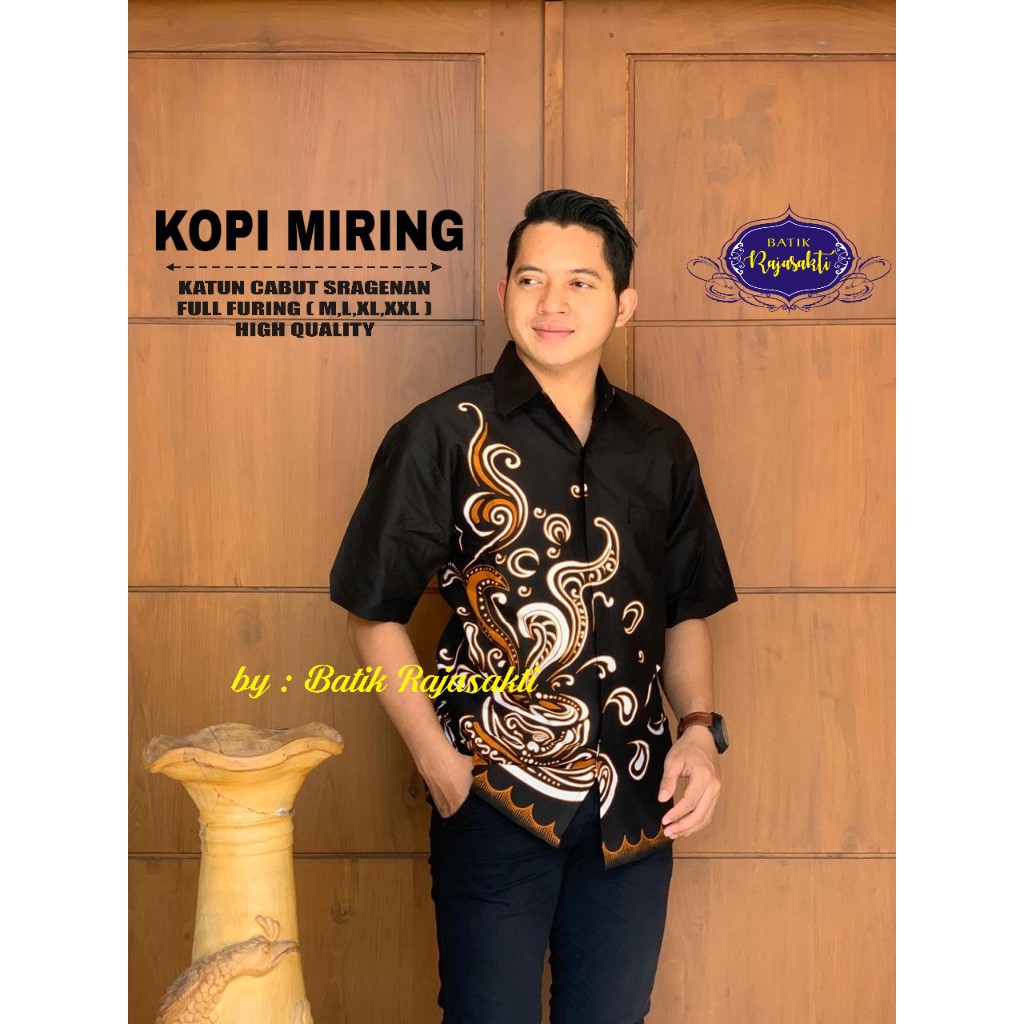 Name: Atasan Kemeja Batik Pria Lengan Pendek Premium Kopi Miring Full Furing Rajasakti Solo Ori