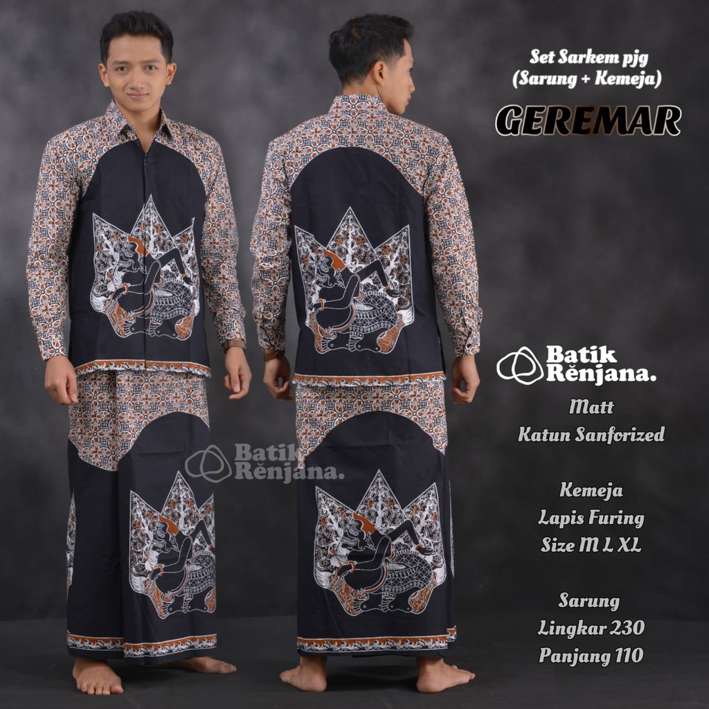 Name: Geremar Kemeja Dan Sarung Batik Pria Dewasa Premium Lebaran Asli Solo Sarkem Renjana