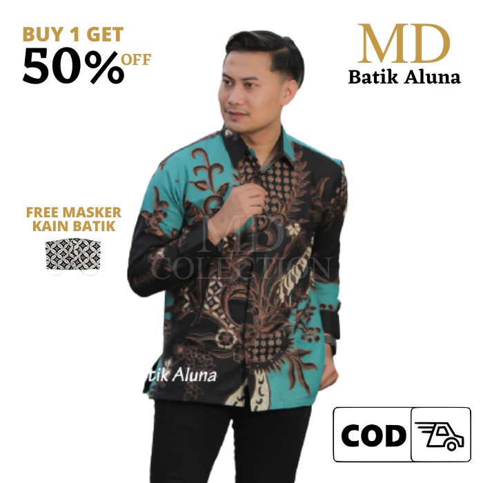 Aluna Batik Slim Fit Batik Premium Kemeja Baju Batik Pria Lengan Panjang Slimfit Modern PCW076