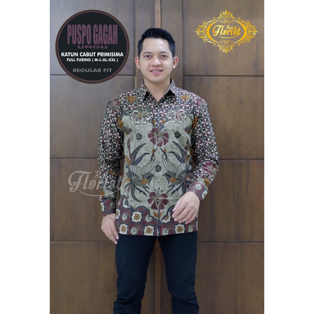 Name: Batik Solo Puspo Gagah Ungu Kemeja Pria Katun Cabut Sragenan Full Furing
