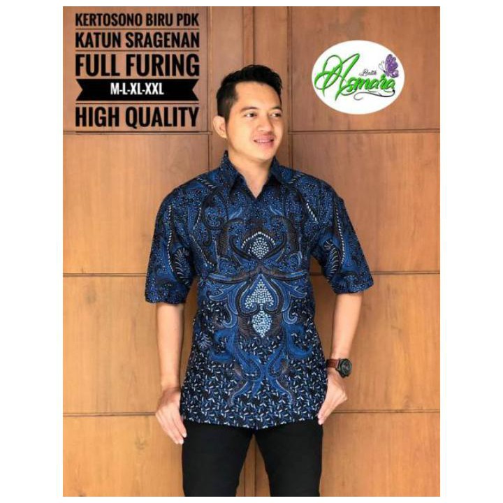 Name: Kertosono Biru Baju Batik Pria Lengan Pendek Lapis Furing Katun Sragenan Hq Size M-xxl Batik Solo